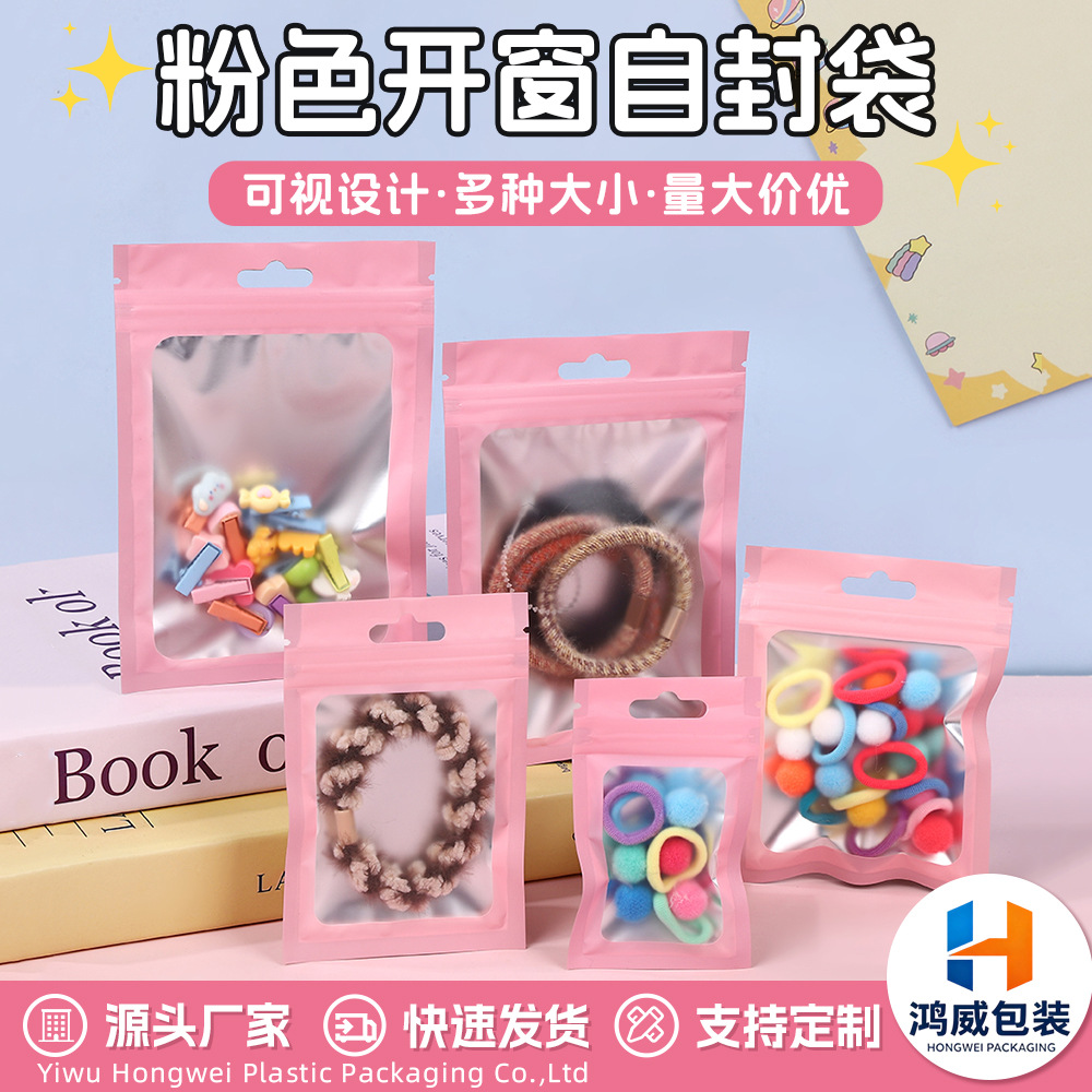 New Pink Windowed Self-Sealing Bags, Sweet Jewelry Self-Sealing Bags, Hair Ties, Hair Accessories, Data Cable Packaging Bags, in Stock