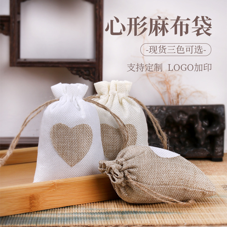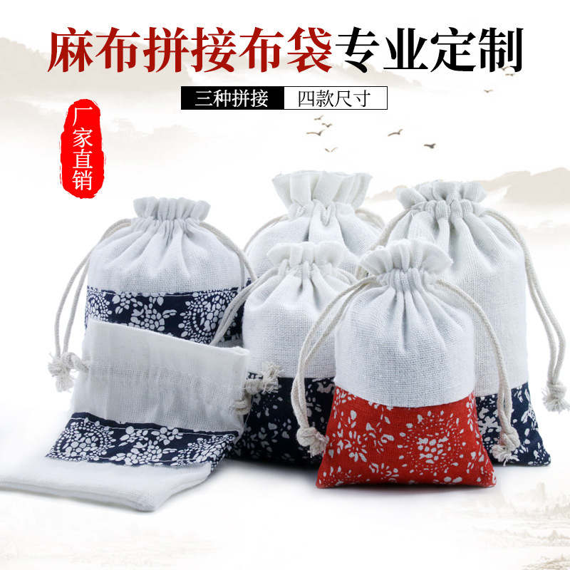 Linen Drawstring Bow Pocket Wen Play Buddha Beads Bracelet Jewelry Packaging Bag Drawstring Storage Linen Bow Pocket Spot