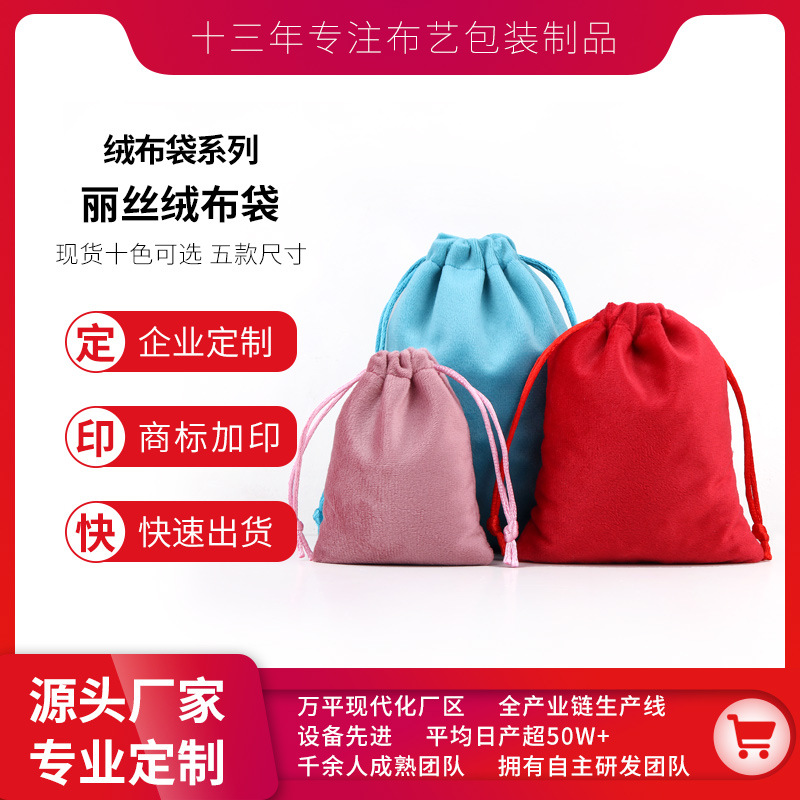 Red high-grade flannel bag girdle gold jewelry bag drawstring girdle bag gift jewelry packaging bag wholesale