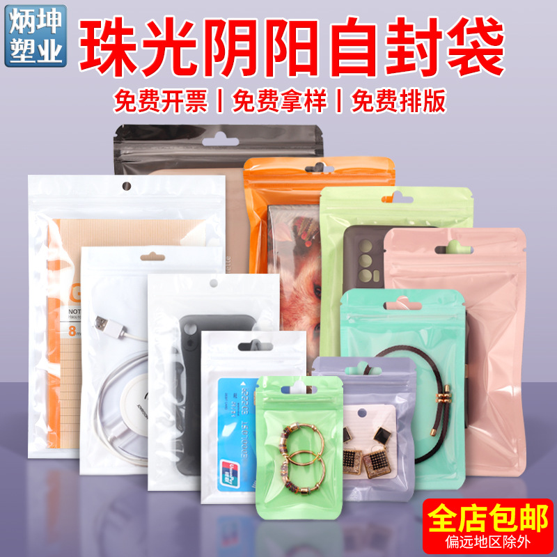 Long Pearlescent Film Yin and Yang Ziplock Bag Watch Strap Ziplock Bag Mobile Phone Case Data Cable Ziplock Bag Jewelry Packaging Bag