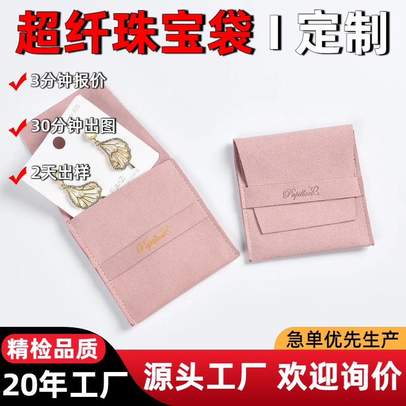 Wholesale Microfiber Envelope Flap Bag Necklace Jewelry Bag Double-Sided Velvet Snap Button Dustproof Storage Bag Custom Logo