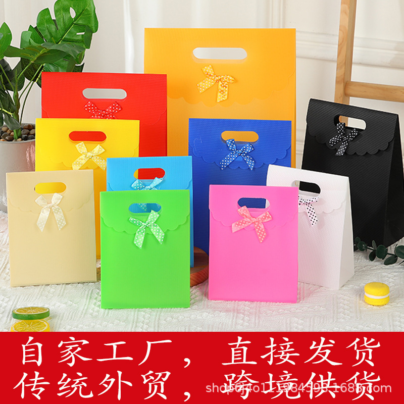 Factory Ready-Made Packaging Bag Small Gift Bag Jewelry Bag Macaron Color Flip Gift Bag Bow Velcro