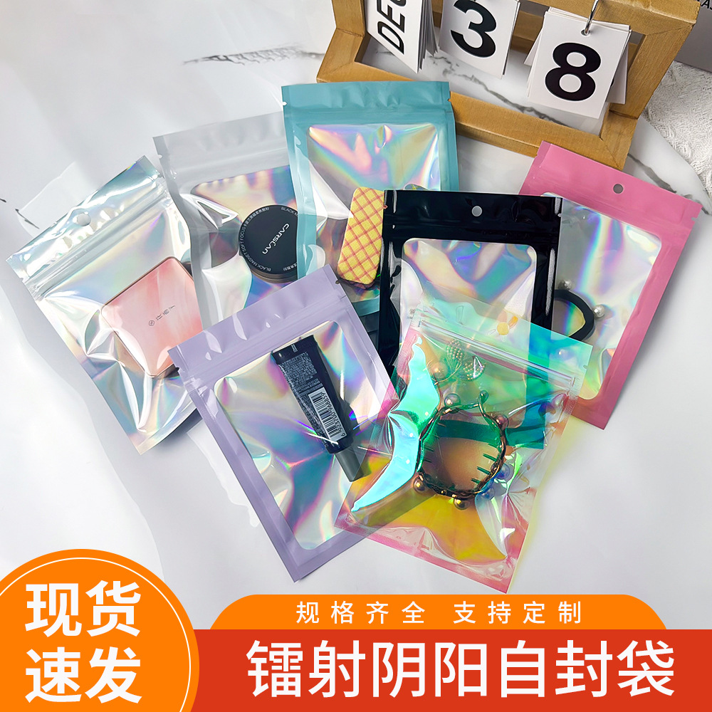 Laser Yin and Yang Ziplock Bag Three-Sided Sealing Bag Glitter Jewelry Sealing Bone Bag Rainbow Film Fantasy Plastic Bag Sealing