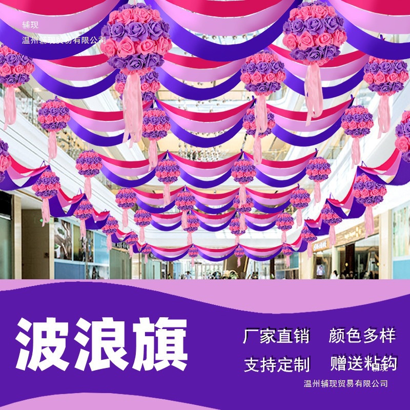 Flower Ball Wave Flag Ribbon Garland National Day Jewelry Store Gold Storefront Mall Opening Ceiling Hanging Decoration Arrangement