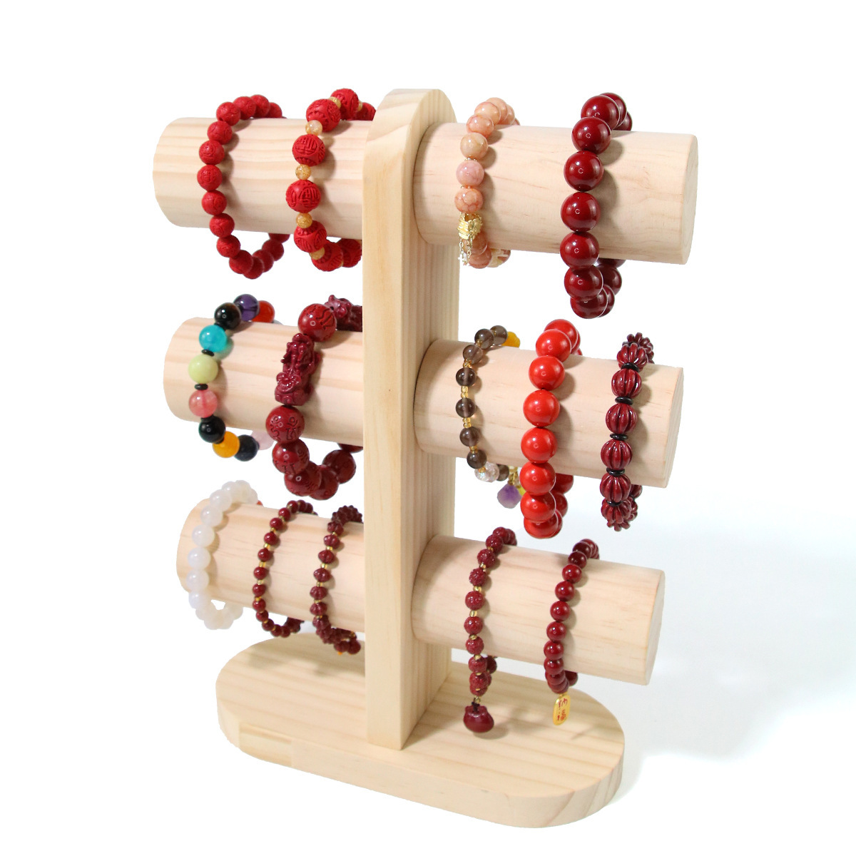 Log Three-layer Jewelry Rack Wooden Headed Flower Bracelet Bracelet Beads Bracelet Hair Ring Display Rack Jewelry Store Display Rack