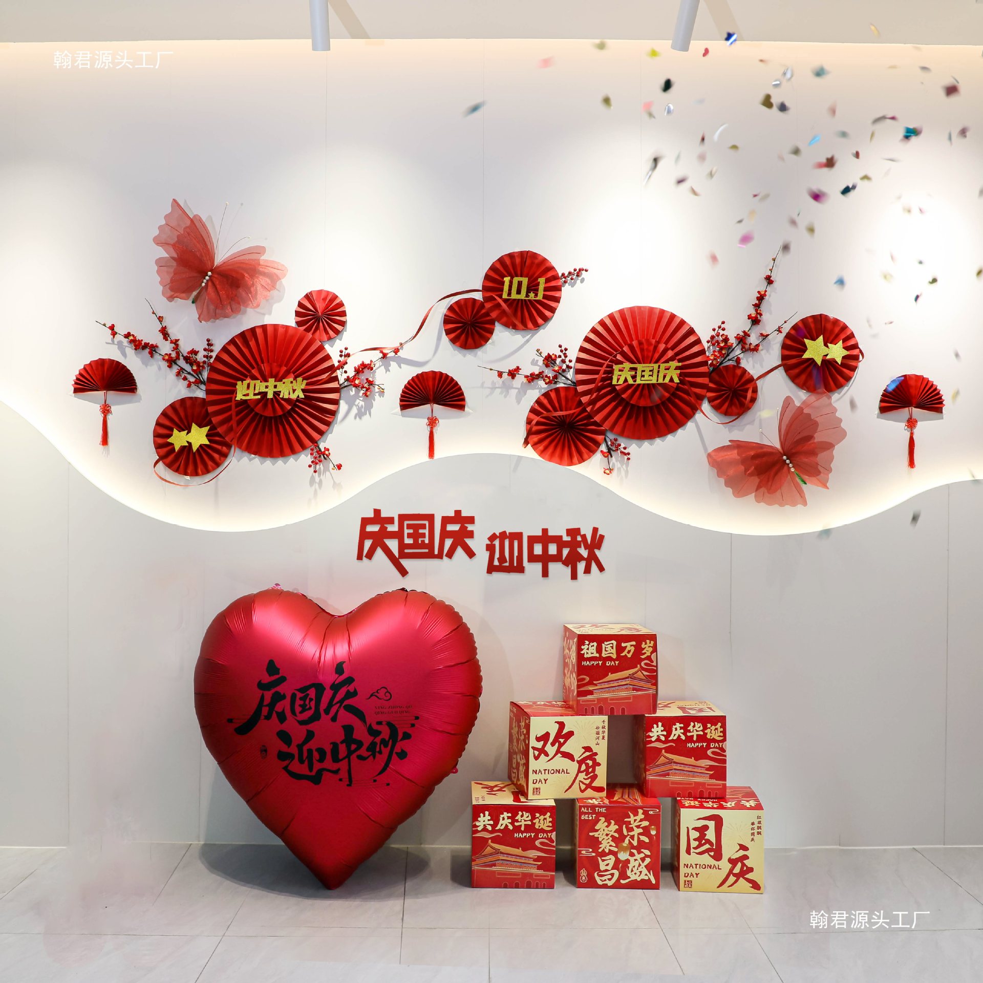 Mid-Autumn and National Day Atmosphere Decoration Company Jewelry Store Hotel Lobby Atmosphere Decoration Decorative Wall Background Garland