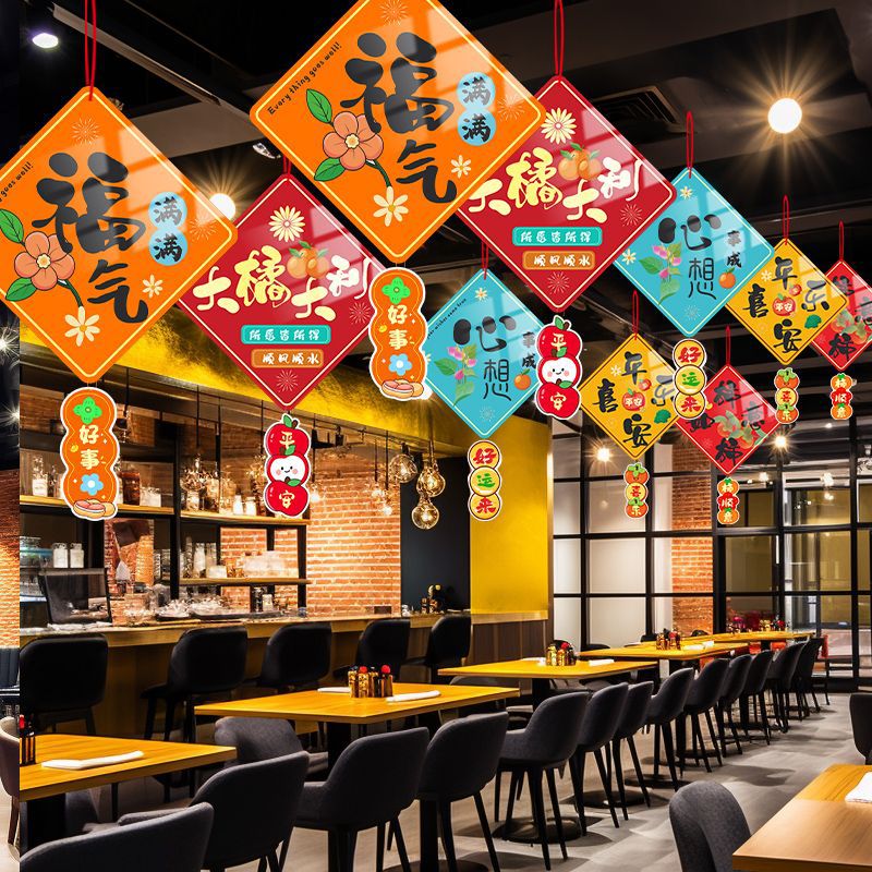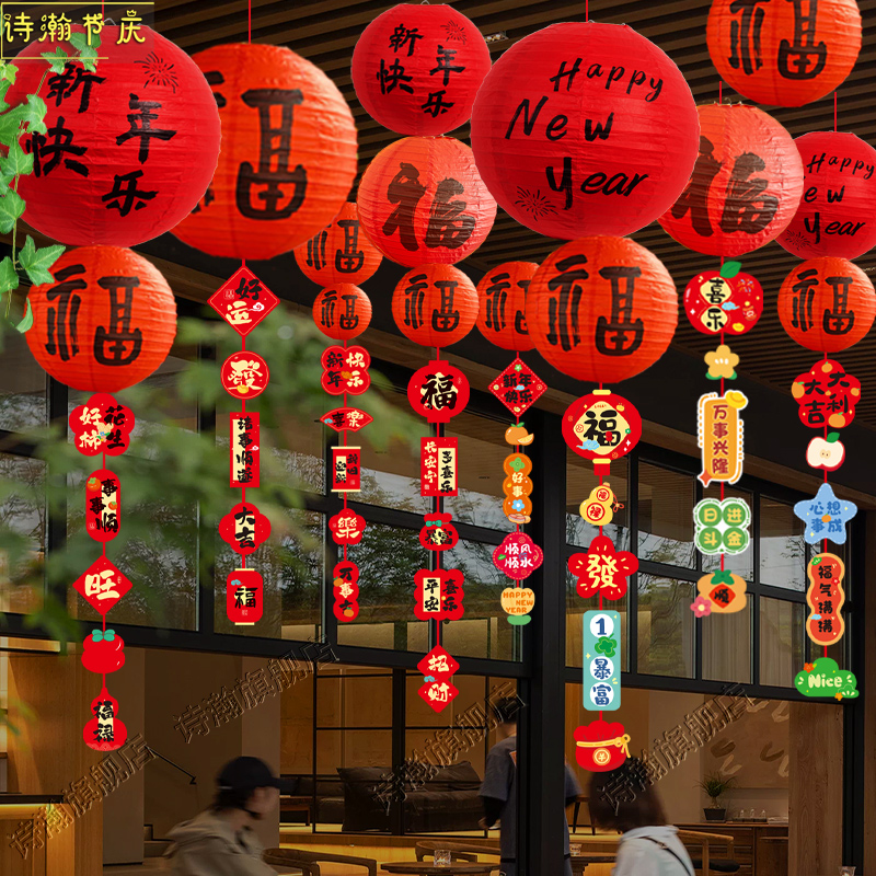 ✅ 2026 New Year Decoration New Year's Day Jewelry Store Window Spring Festival Lantern Pendant Blessing Words Store Atmosphere Cloth