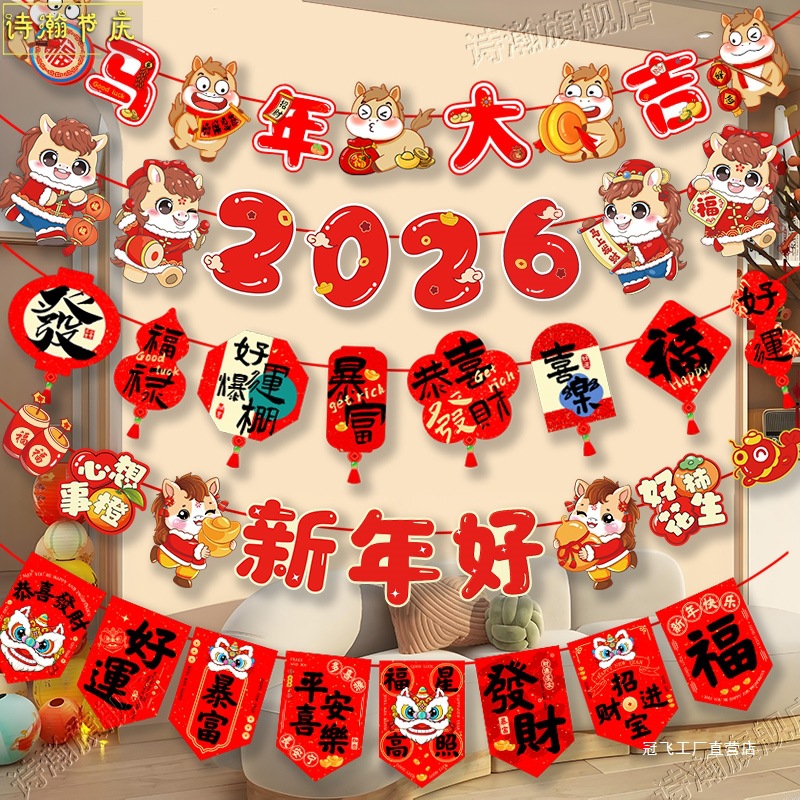 2026 New Year Decoration Hanging Ornaments for Gold Stores, Restaurants, Jewelry Stores, Scene Atmosphere Setup, Flag Hanging Strings