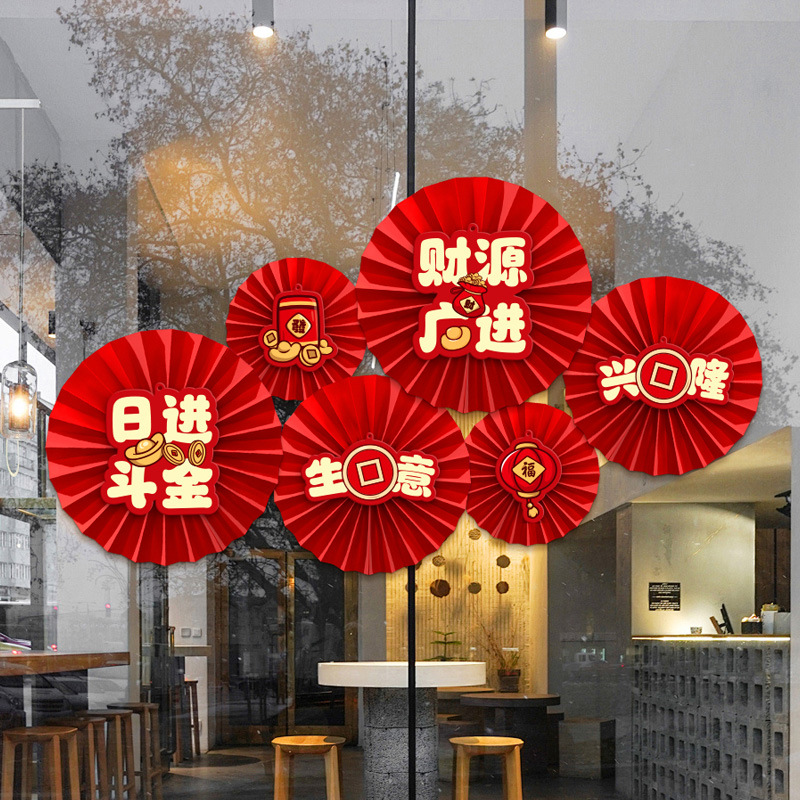 Good Luck in Opening a Paper Fan Flower Shop Window Atmosphere Decoration Jewelry Store Opening Red Shopping Mall Event Atmosphere Decoration