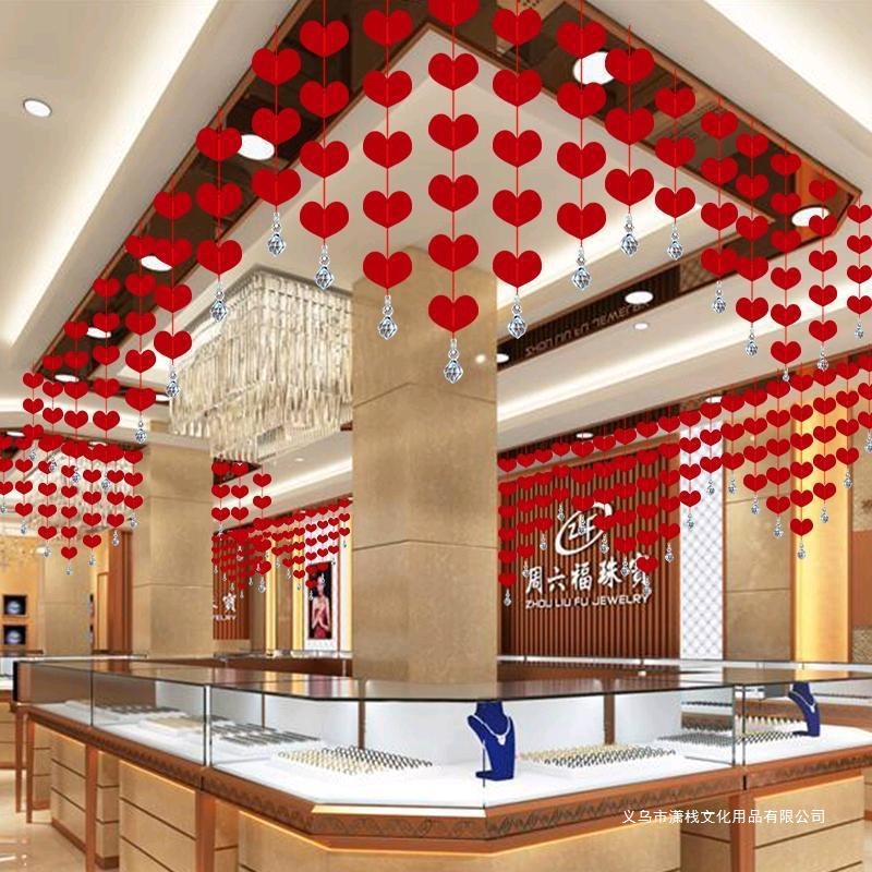 Chinese Valentine's Day Jewelry Store Store Atmosphere Decoration Scene Layout Christmas Shopping Mall Window Hangings Hanging Pendants