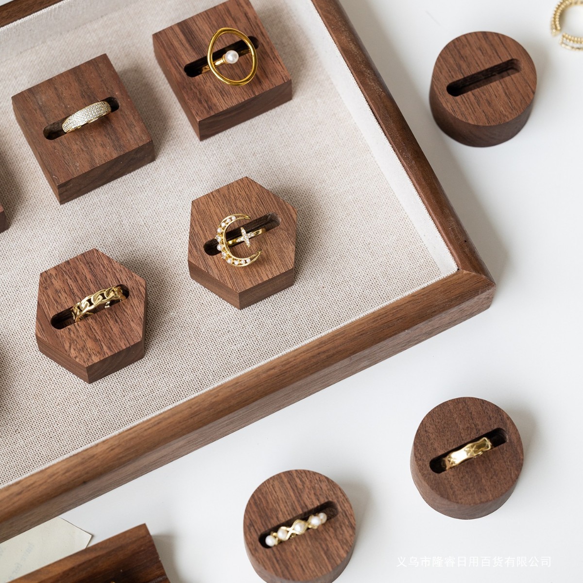Retro Display Stand for Jewelry, Rings, Clothing Store Photo Props, Walnut Jewelry Display Rack