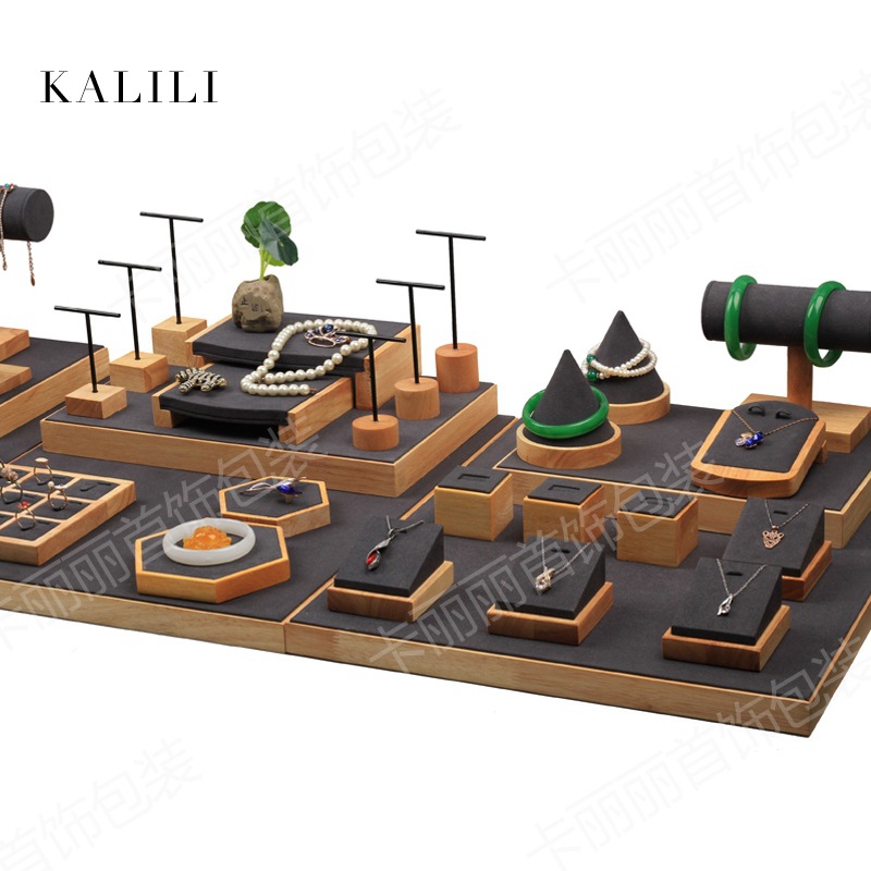 New Solid Wood Microfiber Jewelry Display Tray Necklace Ring Bracelet Jewelry Display Tray Jewelry Store Display Placement