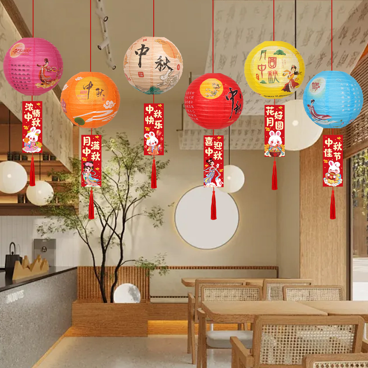 Mid-Autumn Festival Decorative Lantern Pendants Shopping Mall Store Jewelry Store National Day Event Atmosphere Scene Layout Pendants