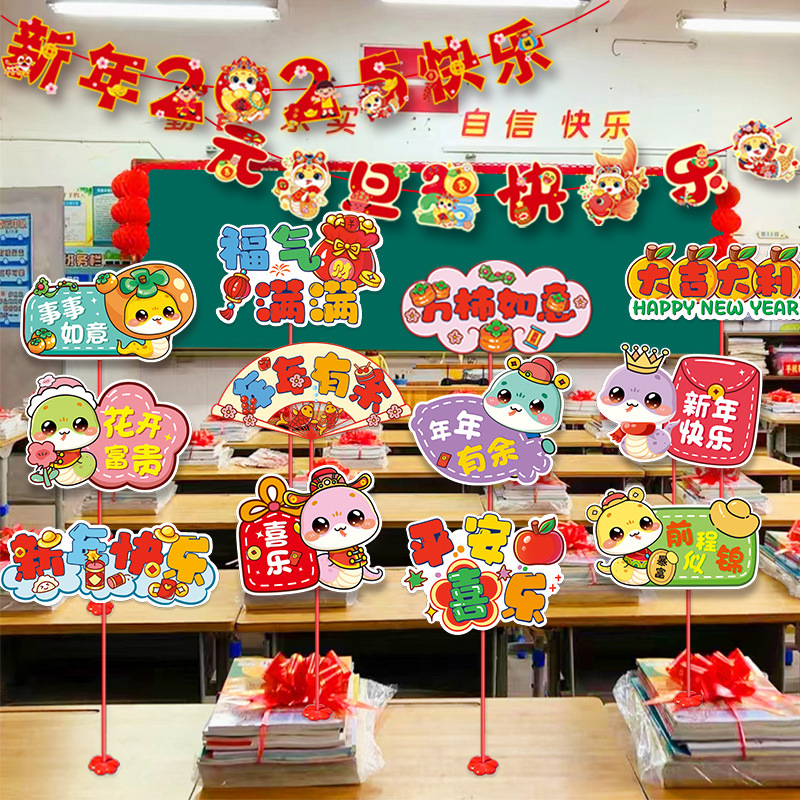 2025 New Year's Day Decoration Balloon Table Sign Shopping Mall Jewelry Store Kindergarten School Classroom Class Blackboard Layout