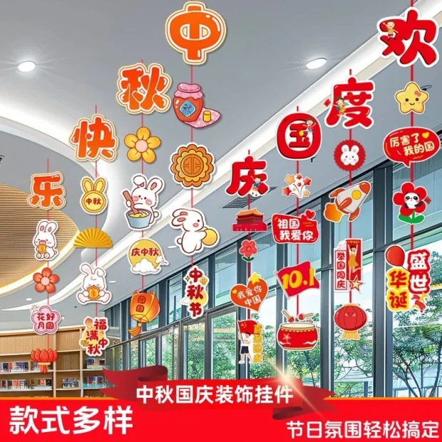 Mid-Autumn and National Day Decoration Pendants, Hanging Flags, Shopping Malls, Supermarkets, Jewelry Store Pendants, Event Festive Atmosphere Scene Layout