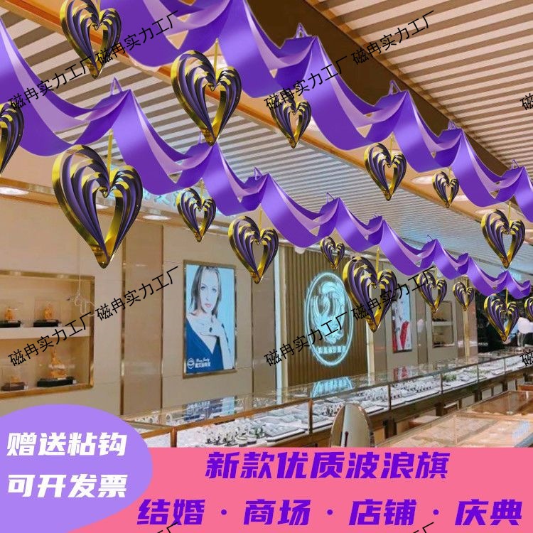 Wave Flag Ribbon Opening Ceiling Decoration Garland New Year's Day Jewelry Store Mall Layout Shop Decoration Heart