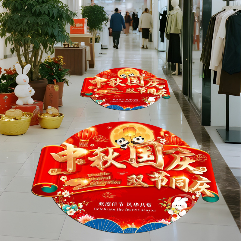 National Day Atmosphere Decoration Jewelry Store Window Stickers Event Stickers Scene Floor Stickers Glass Door Stickers Mid-Autumn Festival Decoration Cat