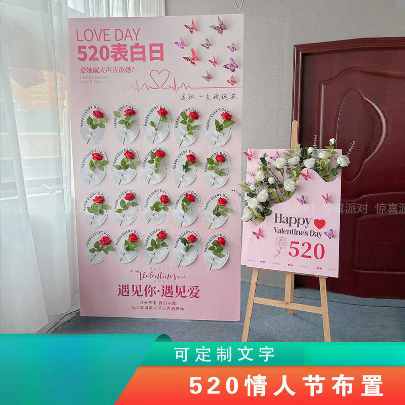 520 Valentine's Day Atmosphere Decoration Gold Store Jewelry Store Mall Rose Flower Sign-In Background Wall Check-In Kt Board Customization