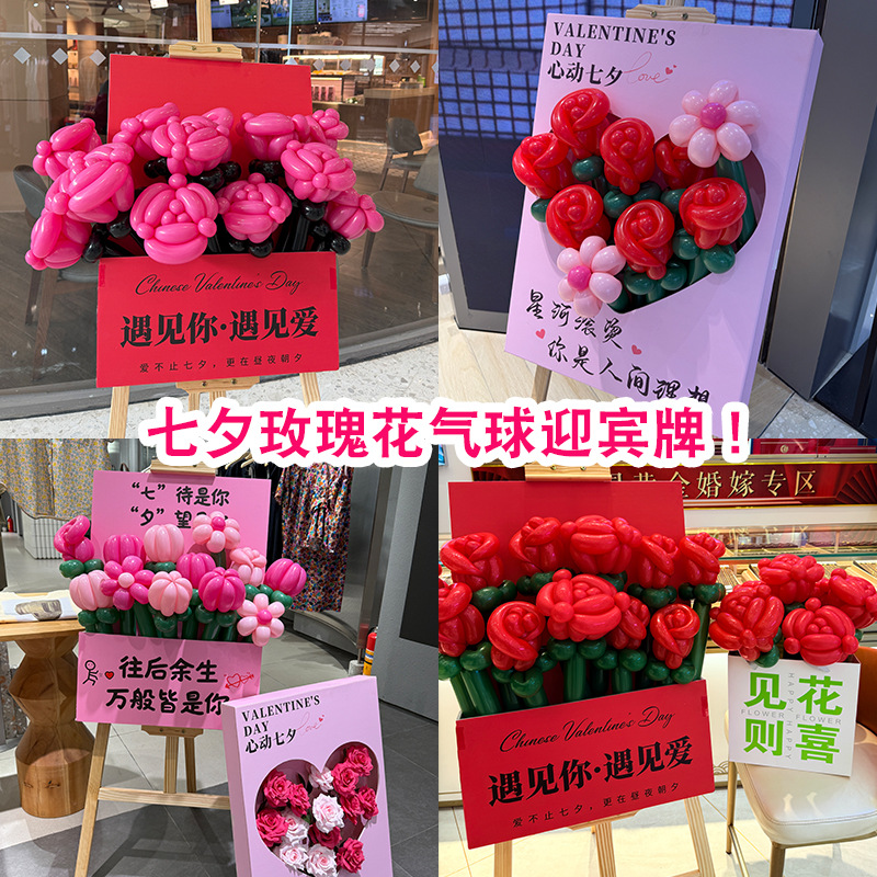 Chinese Valentine's Day Decoration Rose Bouquet Event Jewelry Store Door Atmosphere Board Welcome Box