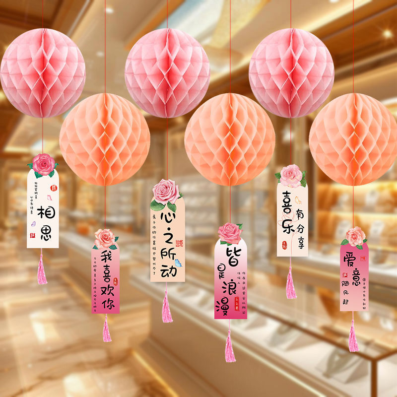 Chinese Valentine's Day Opening Anniversary Store Celebration Event Shopping Mall Store Decoration Ceiling Balloon Jewelry Store Pendant Arrangement
