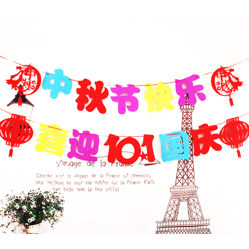 Mid-Autumn Festival National Day Decoration Supplies Shop Creative Flower Non-woven Supermarket Shopping Mall Jewelry Store Flag