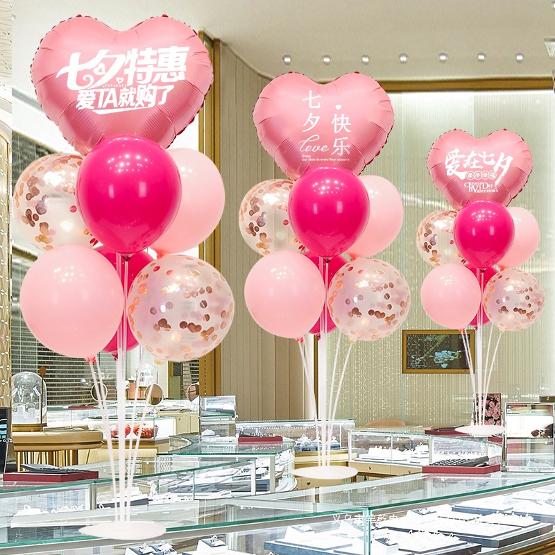 Chinese Valentine's Day Pink Balloon Table Floating Romantic Decoration Shopping Mall Jewelry Store Event Event Atmosphere Scene Layout