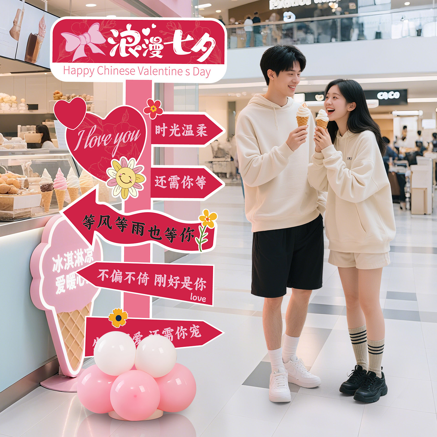 Chinese Valentine's Day Welcome Road Sign Kt Board Column Decoration Shopping Mall Jewelry Store Event Scene Atmosphere Decoration Ornaments