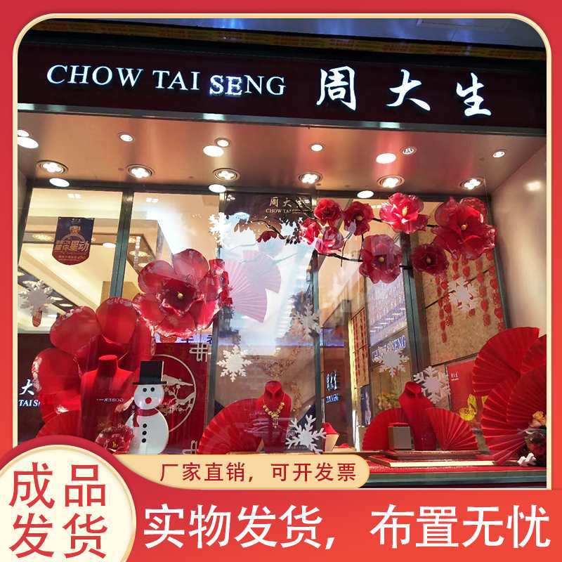 Winter Jewelry Store Gold Shop Window Decoration Wintersweet Red Plum Props Chinese Display Red Scene Layout