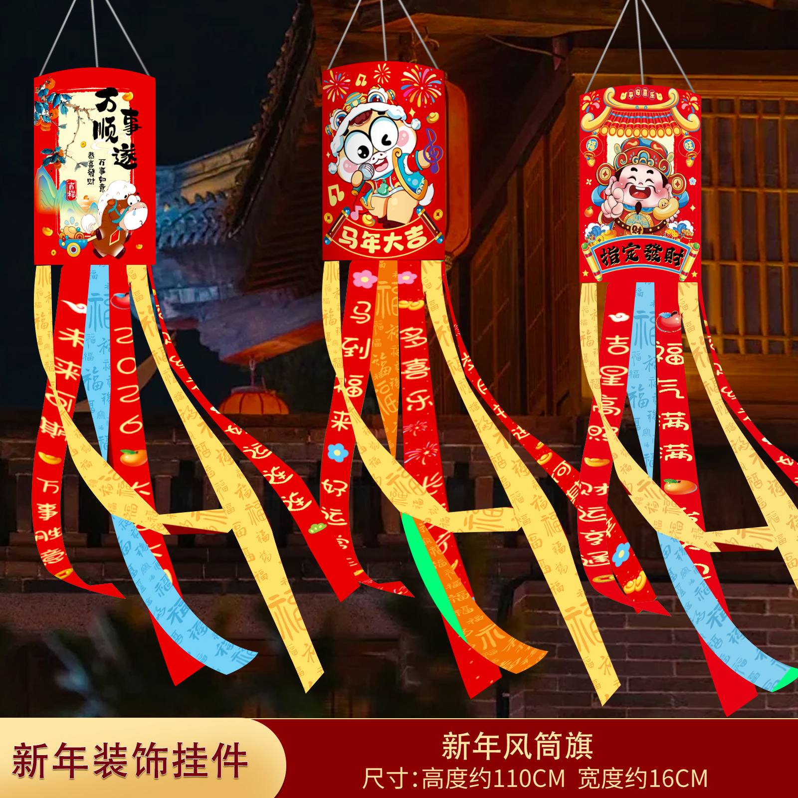 2026 New Year's Day Decoration Fan Flag Pendant Shopping Mall Store Jewelry Store Pendant Spring Festival Event Atmosphere Layout