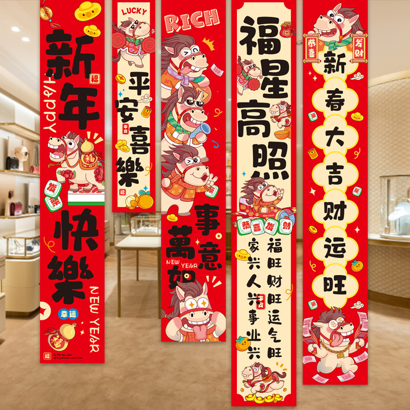 2026 New Year Decoration Hanging Cloth for Shopping Malls and Jewelry Stores, Year of the Horse Spring Festival Festive Atmosphere Arrangement Background Cloth Hanging Decorations