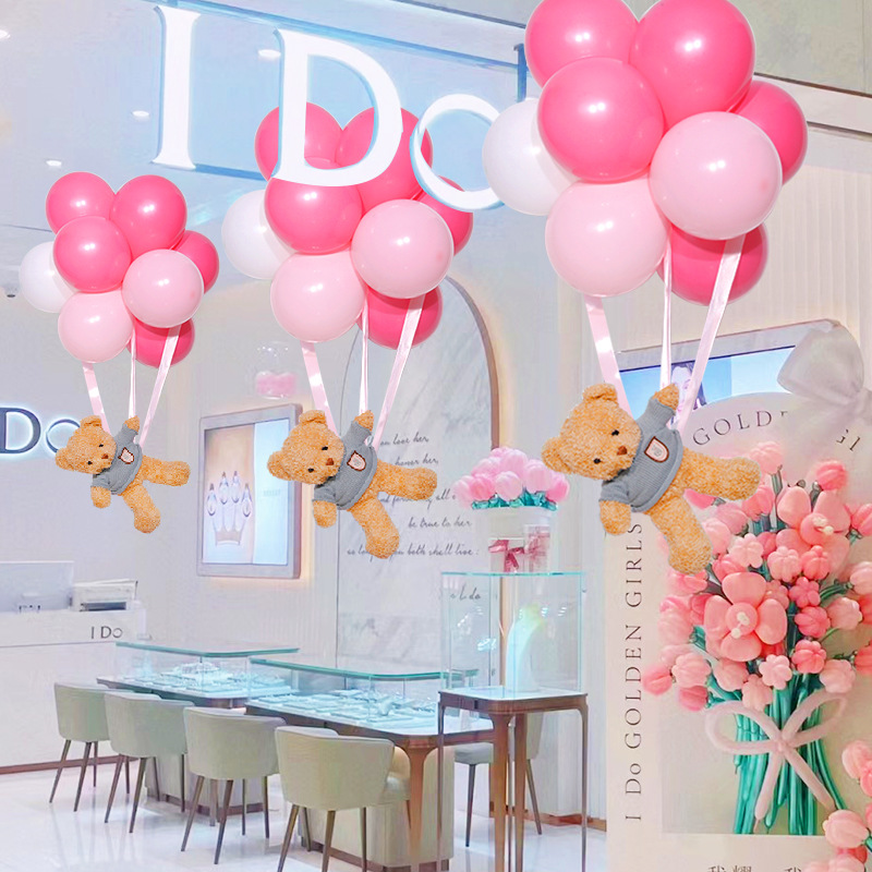Chinese Valentine's Day Pink Bear Hot Air Balloon Hanging Decoration Ins Jewelry Store Chamber of Commerce Scene Event Atmosphere Layout
