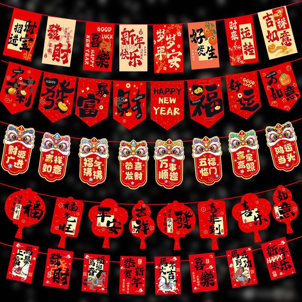 New Year's Day Flag Mall Supermarket Jewelry Store Window Decoration String Flag New Year Event Atmosphere Scene Arrangement Hanging Flag