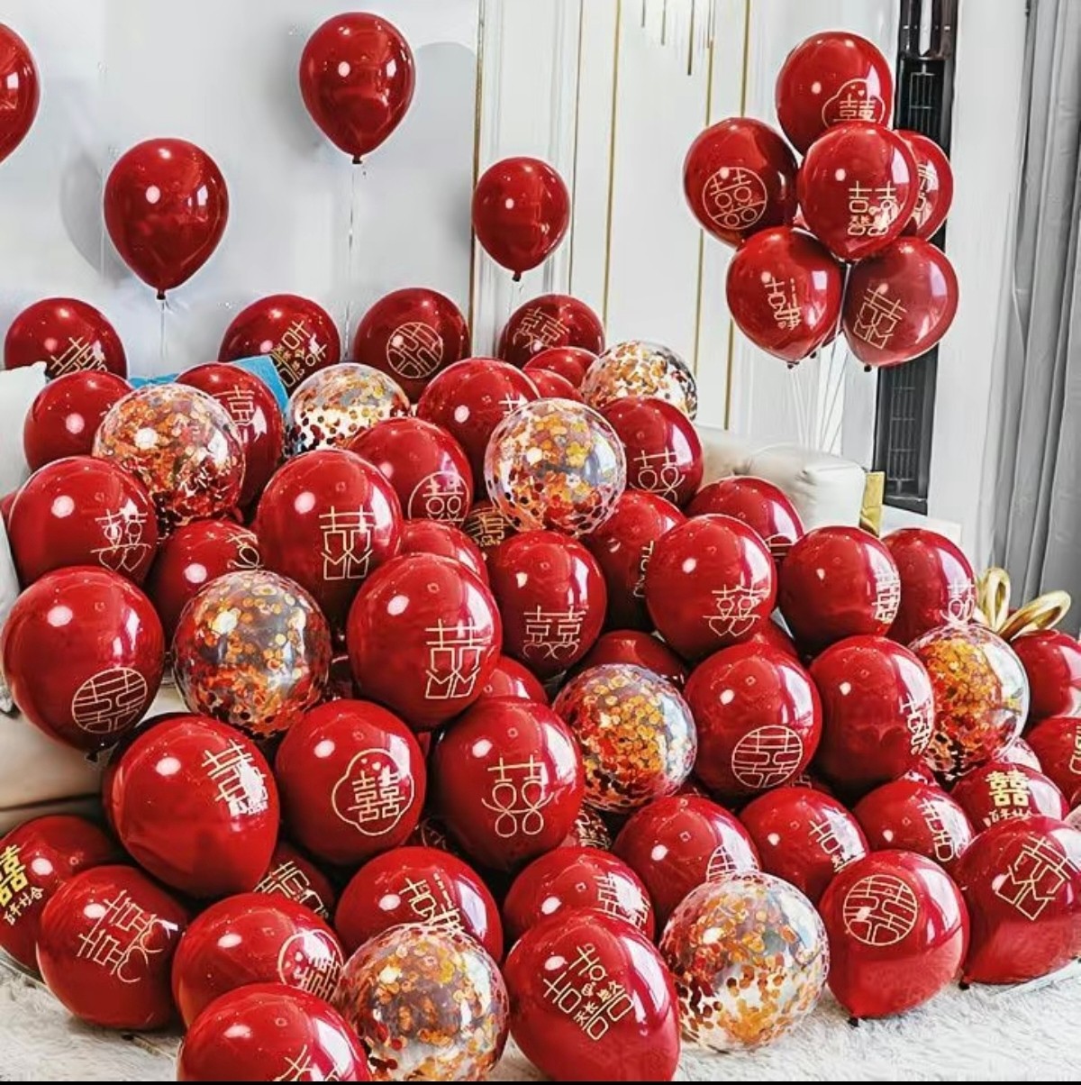 Wedding Room Decoration Balloons Wedding Balloons Double-Layer Thickeneded Pomegranate Ruby Red Balloons Wedding Engagement Wedding Supplies