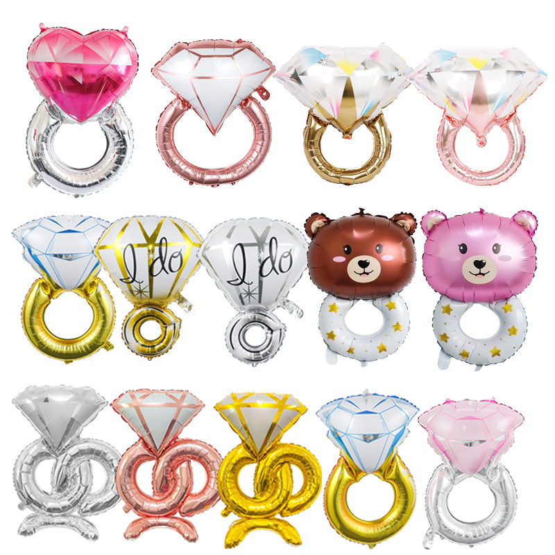 New Large I DO Diamond Ring Balloon Proposal Decoration Room Love Bear Hollow Ring Aluminum Foil Balloon
