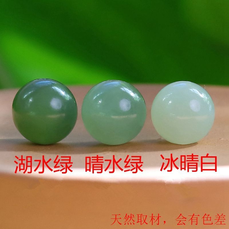 Xinjiang Hotan Jade Lake Water Green Round Beads Loose Beads Accessories Clear Water Green Round Beads with Holes Bracelet Beads Necklace Beads