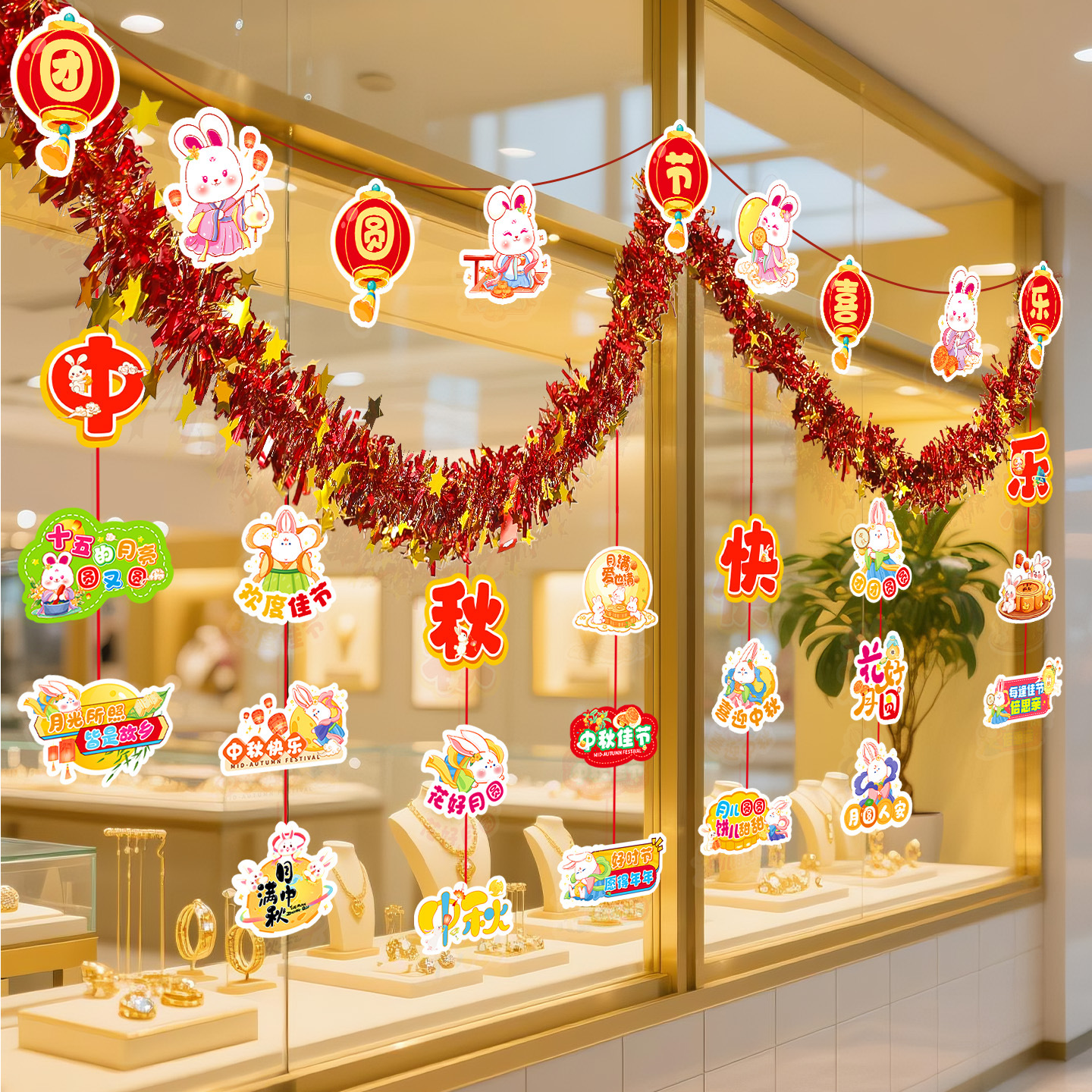 2025 New Mid-Autumn Festival Atmosphere Scene Decoration Shopping Mall Jewelry Store Kindergarten Woolen Strip Garland Hanging Decoration