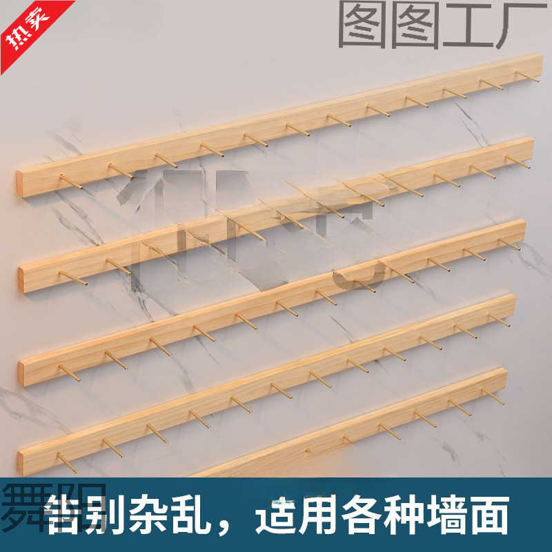 Clothing Store Wall Hanging Rack Wall Hanging Wooden Strip Hook Jewelry Rack Kindergarten Wall Earrings Necklace Display Rack Wooden Board