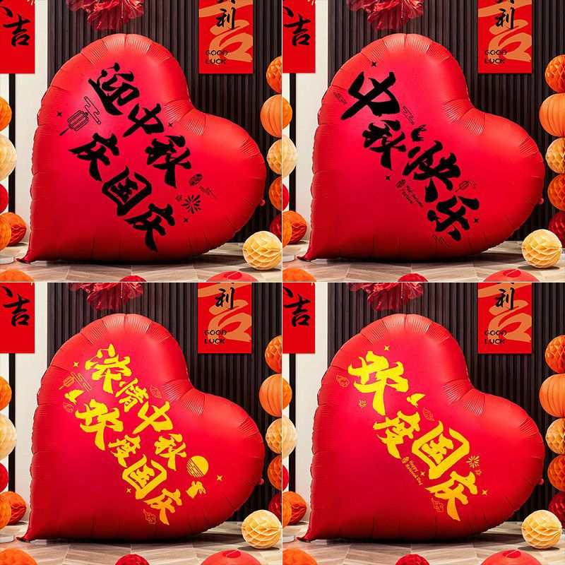 2025 Mid-Autumn Festival and National Day Atmosphere Decoration Heart Aluminum Film Oversized Balloon Jewelry Store Decoration Supplies Props