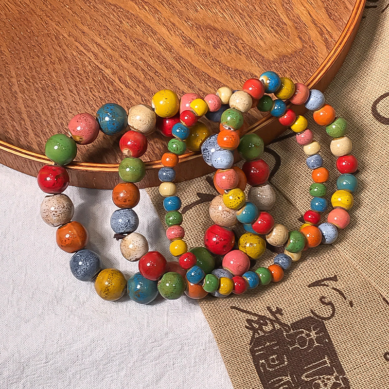 Jingdezhen Ceramic Bracelets Wholesale Student Beaded Flower Glaze Plain Ring Non-Fading Bracelet Stall Jewelry Boutique