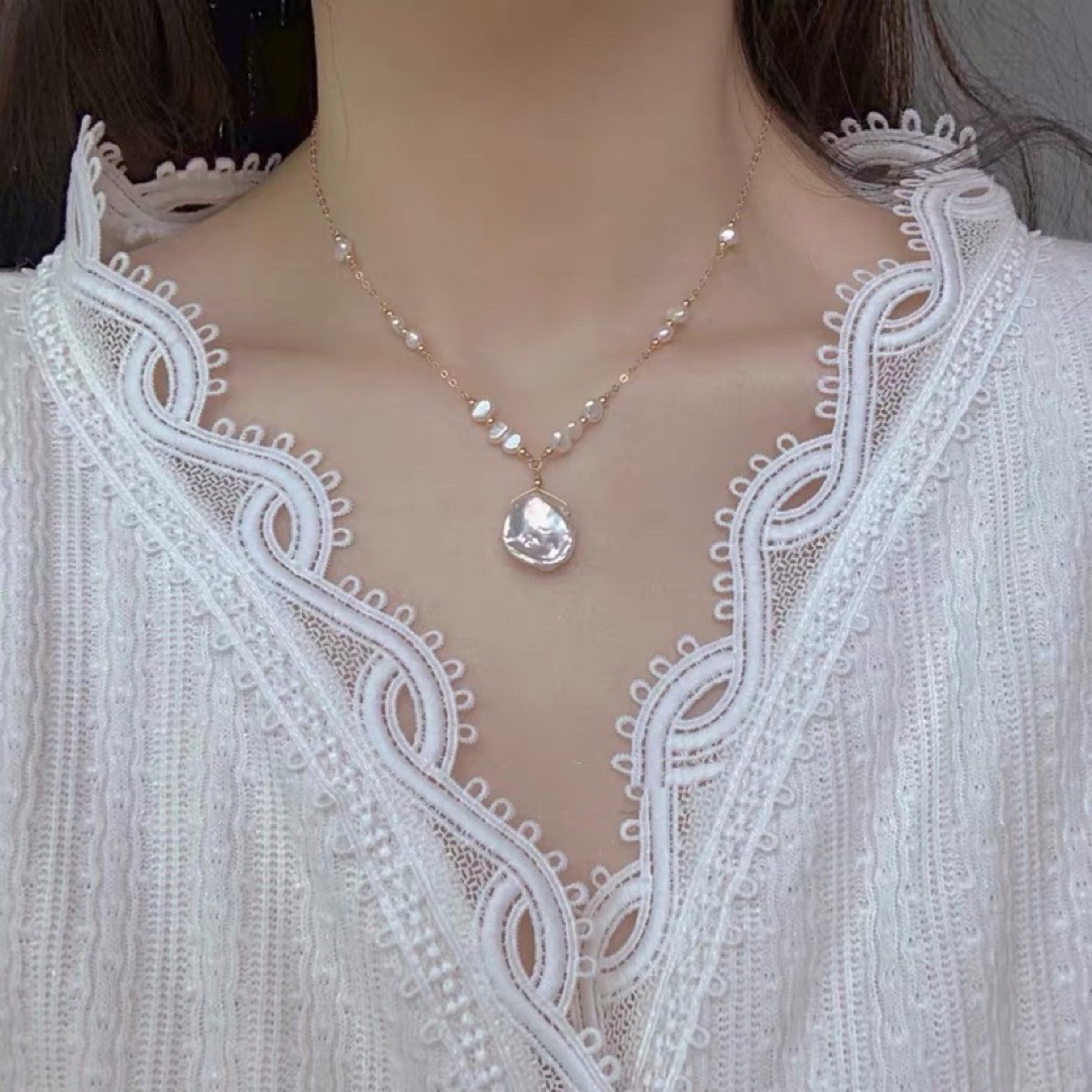 Petal Beads Natural Baroque Pearl Clavicle Chain Lace Skirt All-match Fashionable Elegant Necklace Women's Clavicle