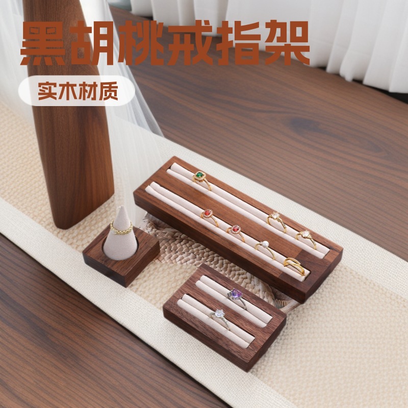 Black Walnut Solid Wood Ring Display Stand High-End Jewelry Ring Jewelry Store Display Display Ring Holder Photo Props