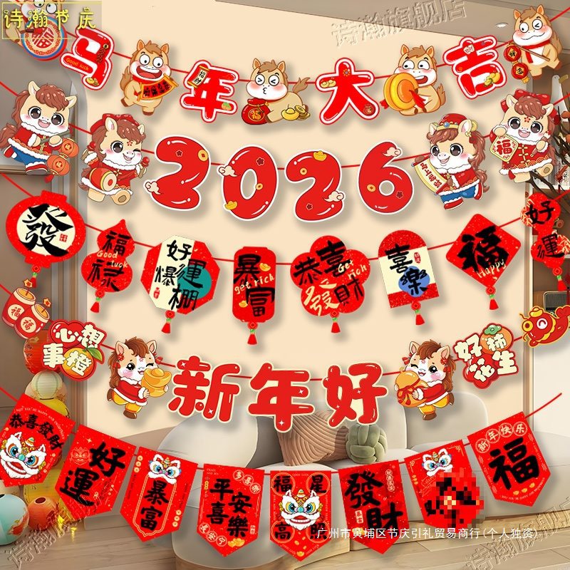 New Year's Day Flag Mall Supermarket Jewelry Store Window Decoration String Flag New Year Event Atmosphere Scene Arrangement Hanging Flag