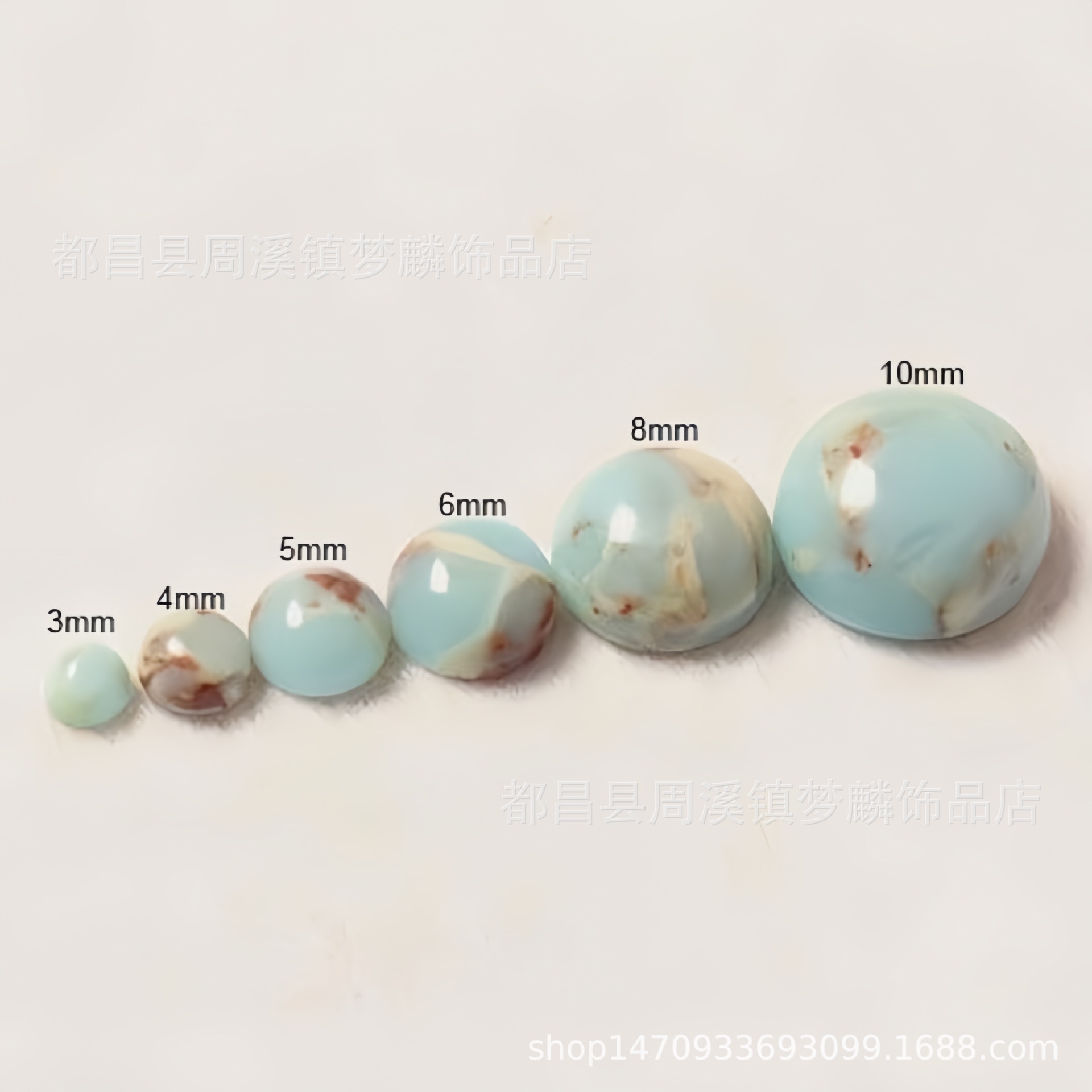 3~12mm synthetic Shoushan stone flat bottom powder pressed Akka semicircle stone ring DIY ring jewelry loose beads with beads