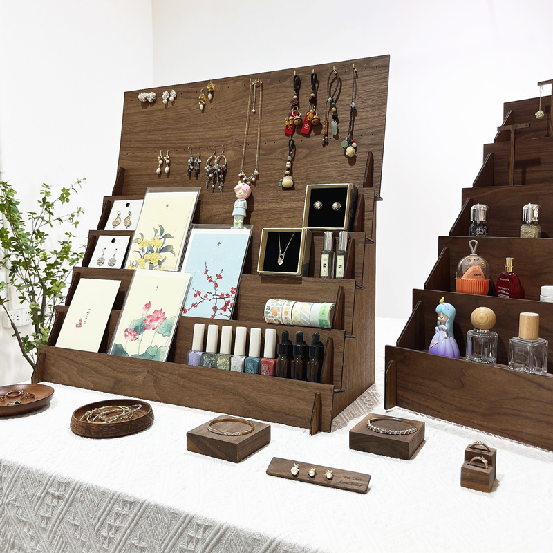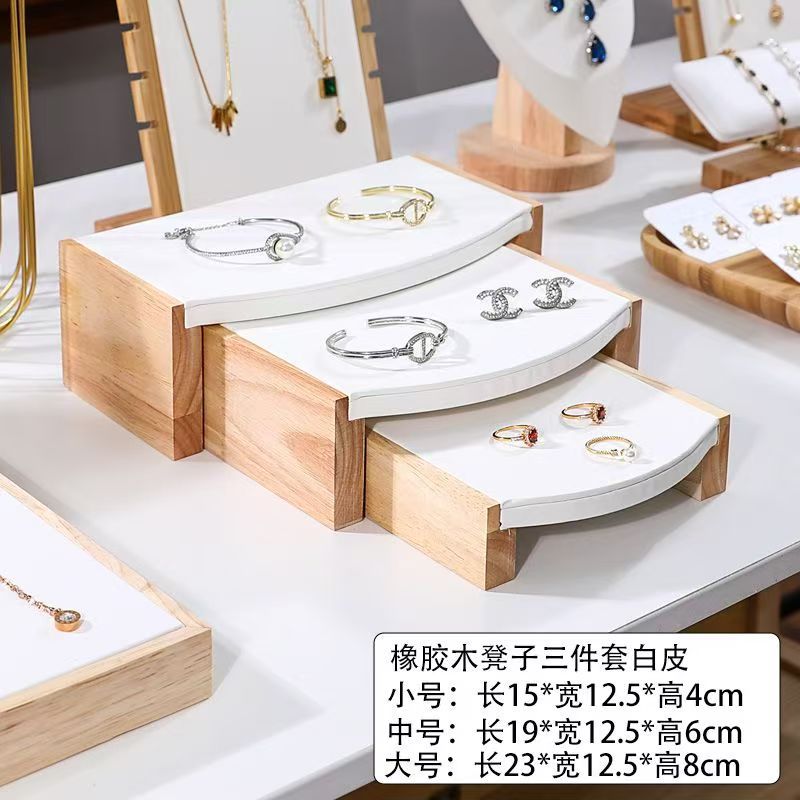 New Solid Wood Jewelry Display Stand, Stepped Coffee Table, Three-Piece Set, Display Plate, Bracelet, Ring, Necklace, Counter Display