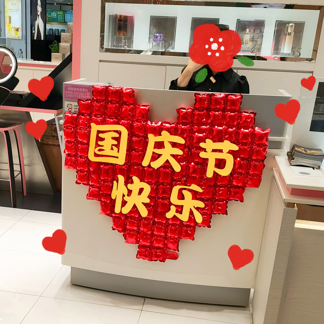 National Day Decoration Shopping Mall Event Window Jewelry Store Counter Front Desk Eleven Heart Balloons Atmosphere Scene Layout