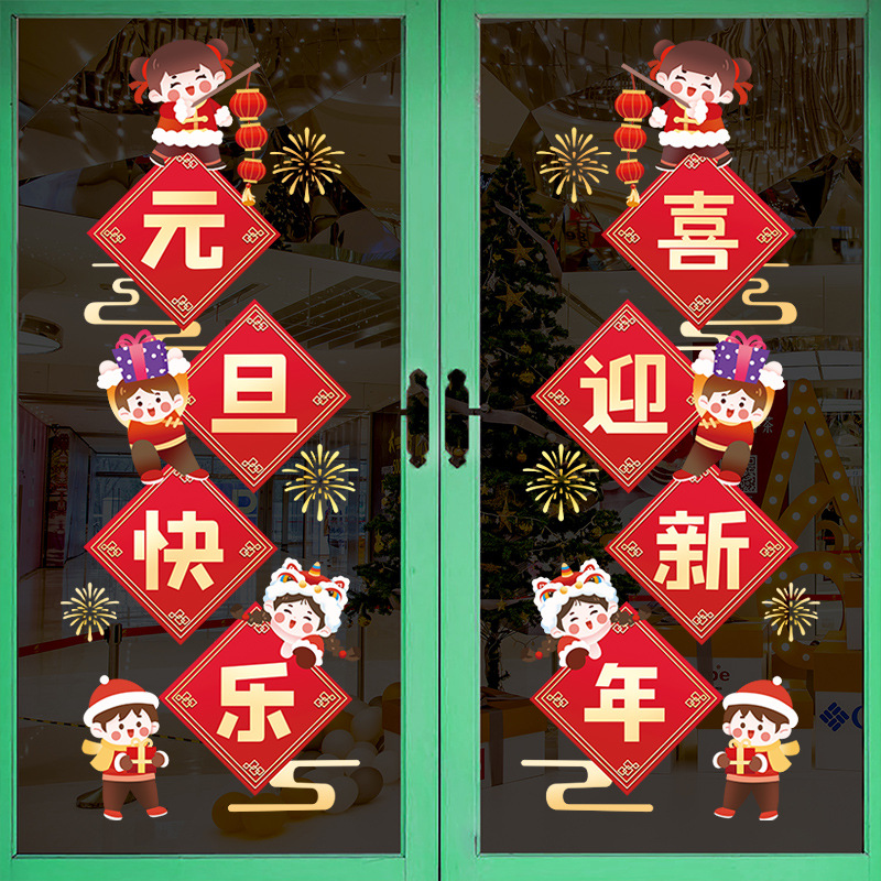 Happy New Year's Day, Welcome the New Year, Decorative Glass Door Stickers, Shopping Mall Jewelry Store Beautification, Store Atmosphere Scene Layout