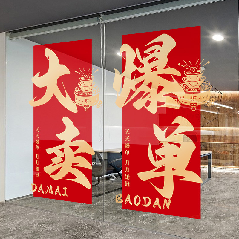 Atmosphere Layout Glass Door Stickers Jewelry Store E-Commerce Company Hot-Selling Slogans Glue-Free Electrostatic Stickers