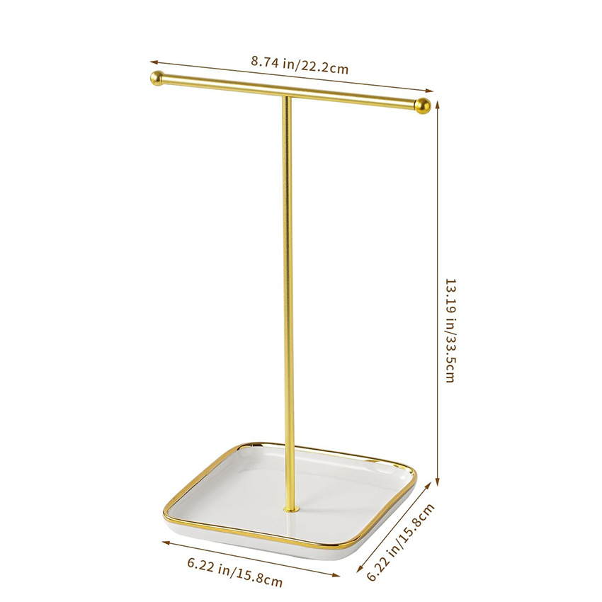 Cross-Border New Product 2-Layer Bracelet Display Stand T-Bar Shape Golden Iron Piece with Ceramic Base Jewelry Storage Display Stand
