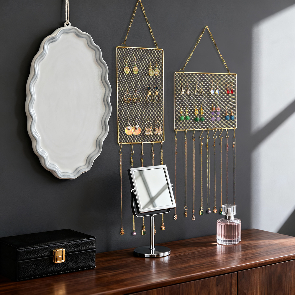 Cross-border new rectangular metal mesh jewelry wall-mounted jewelry storage rack nail earrings pendant necklace display rack