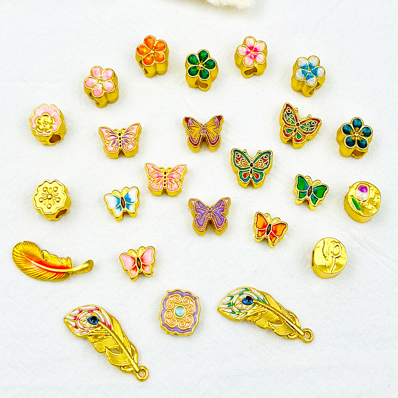 Spring and Summer New Shagin Through Hole Drop Oil Butterfly Peach Blossom Bracelet Beaded Woven Accessories DIY Jewelry Clothing Accessories